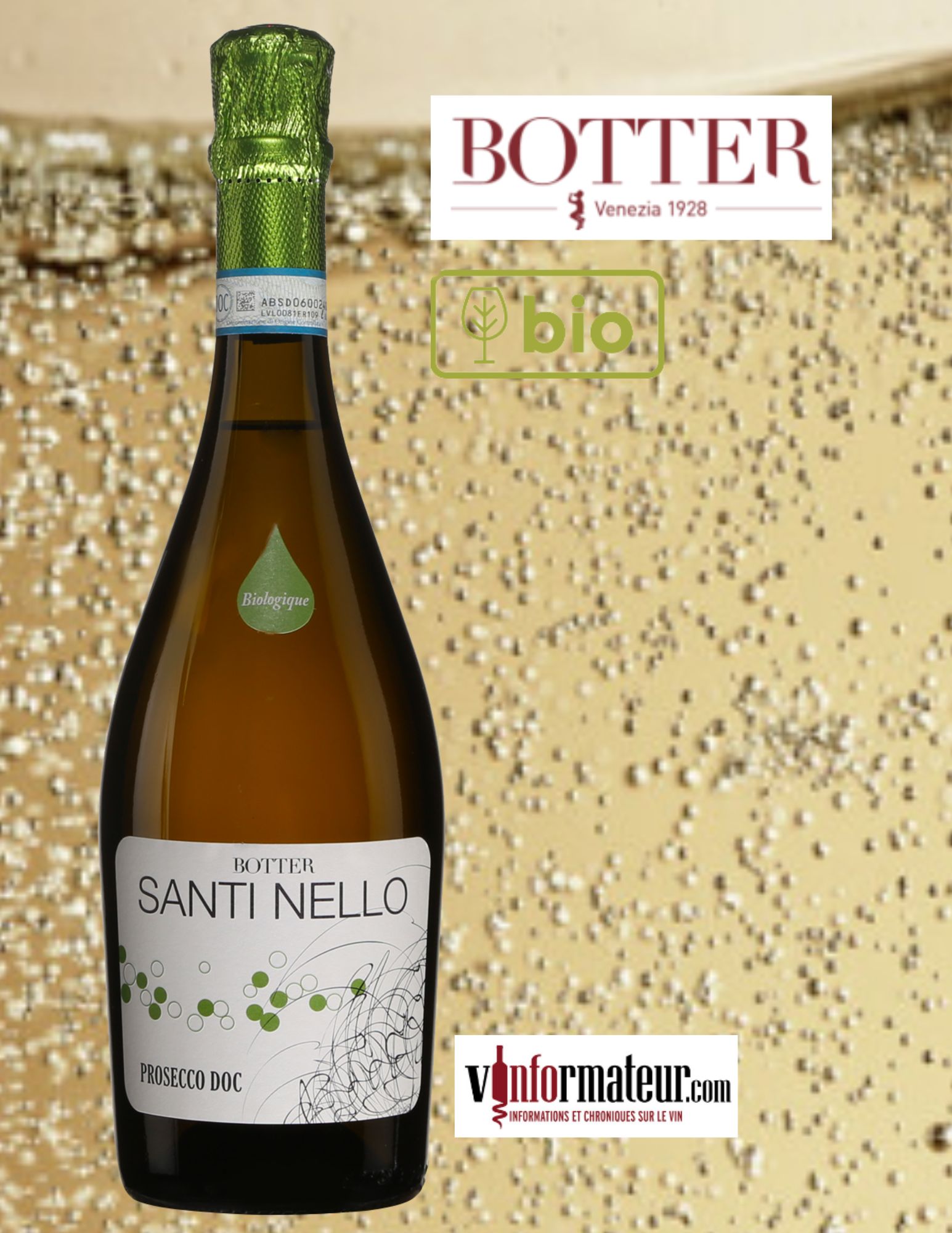 Prosecco, Santi Nello, Botter, vin mousseux bio, Extra Sec, 16,45$, cépage: Glera 100%, sucre : 13 g/l, alc. : 11%, code SAQ : 10540730.