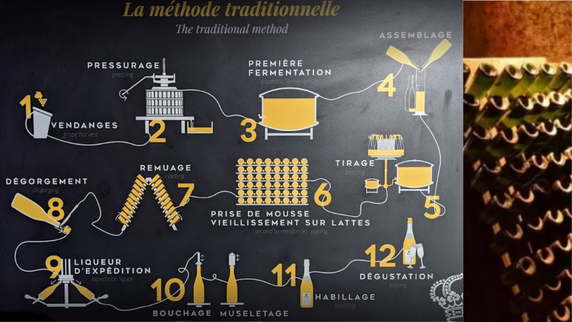 Ces vins sont élaborés sensiblement de la même façon que le Champagne sauf quant au choix des cépages qui peuvent varier selon l’appellation et au temps de vieillissement sur lattes qui en général sera plus long pour les Champagnes.