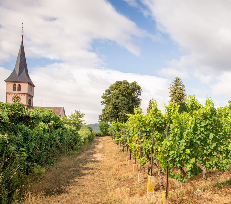 »Situé à l’Est de la France, entre les Vosges et la Forêt-Noire allemande, le vignoble alsacien s’étend sur 170 km du nord au sud et comprend plus de 300 domaines viticoles répartis sur 15 500 hectares. La vigne est cultivée depuis plus de 2 000 ans, ce qui en fait l’une des plus anciennes régions viticoles au monde. La célèbre « Route des vins d’Alsace » permet d’apprécier ses paysages pittoresques caractérisés par ses nombreux châteaux, ses maisons à colombages et ses cigognes. » (source: site web Maison Willm)
