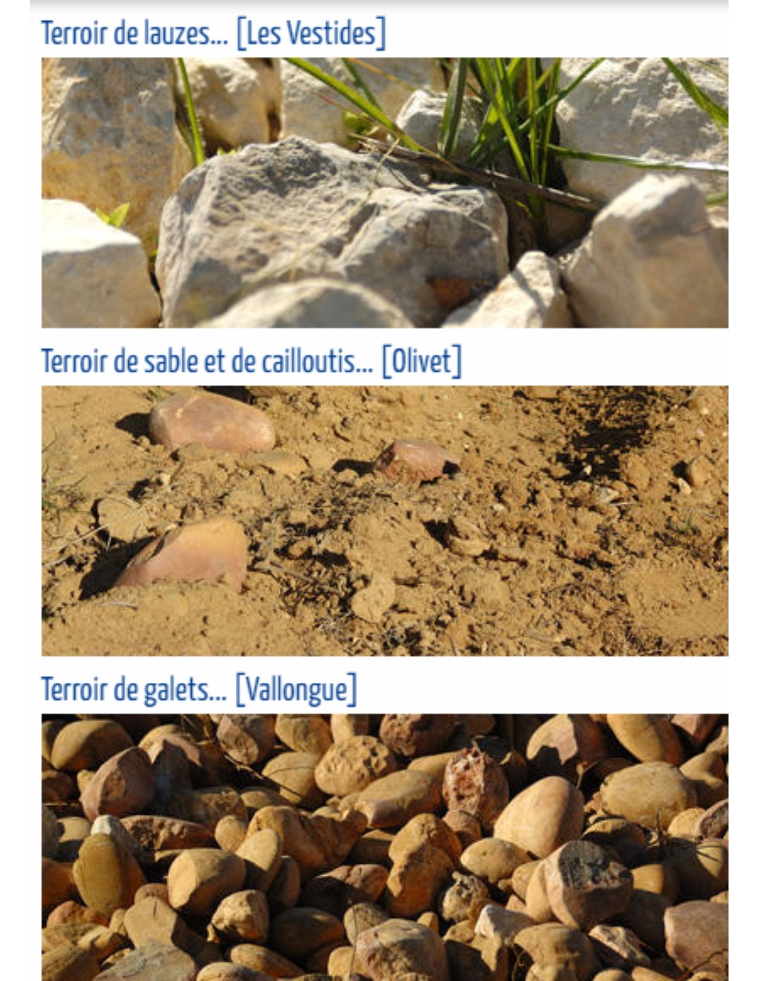 Le terroir est composé de lauzes, de galets, de sable et de cailloutis.