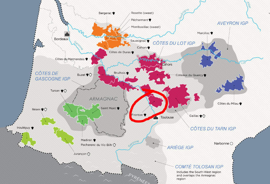 ‘’La Négrette tire son nom de sa couleur noire ; couleur intense qui se retrouve dans les vins. Mais la Négrette apporte surtout des arômes caractéristiques de fruits noirs (mûre, cassis…), de violette, de fruits rouges, de réglisse et des notes poivrées’’. (source : https://www.vins-de-fronton.com/en/la-negrette/#)