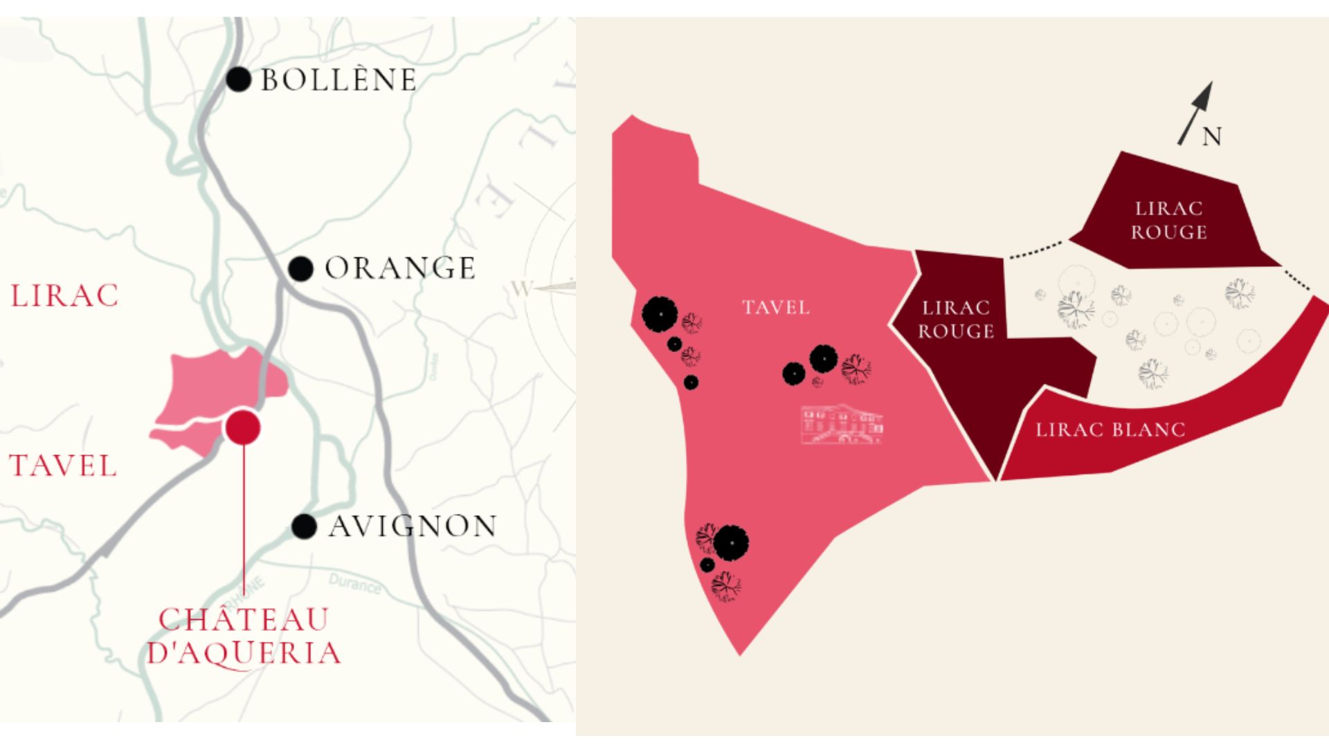 Ce Château d’Aqueria a été élaboré par l’iconique famille Guigal qui s’est portée acquéreur du Château d’Acquéria lequel est composé de 98 hectares d’un seul tenant, dont 68 hectares de vignes, produisant à la fois du Tavel et du Lirac.