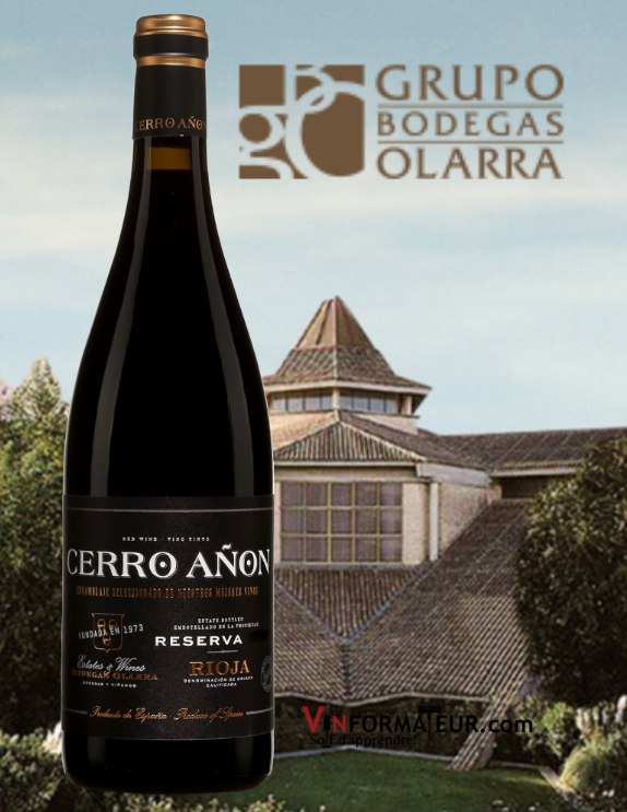 Cerro Anon, Reserva, Espagne, Rioja, Bodegas Olarra, 2015, 20,65$, cépages : Tempranillo 80 %, Mazuelo 10 %, Garnacha Tintorera 5 %, Graciano 5 %, sucre : 2.1 g/l, alc. : 14%, code SAQ : 14479905.