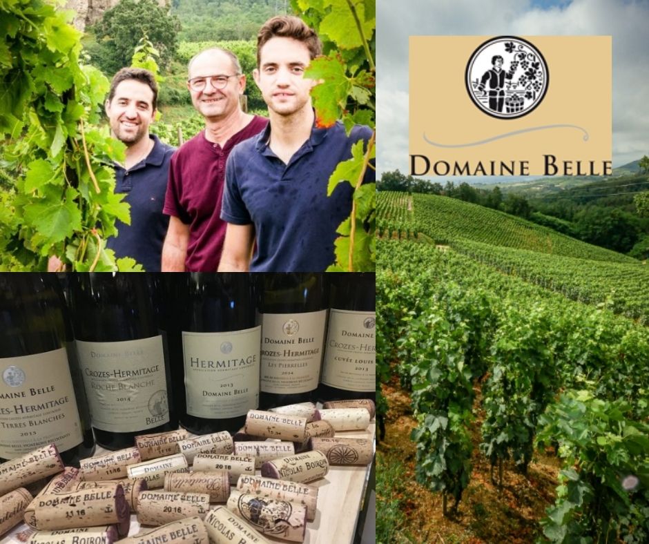 Aujourd’hui le domaine Belle s’étend sur six communes (Larnage, Crozes-Hermitage, Tain l’Hermitage, Pont de l’Isère, Mercurol et Tournon), trois appellations (Crozes Hermitage, Hermitage, Saint Joseph ) et couvre une superficie de 25 ha de vignes. Il est situé dans la vallée du Rhône septentrionale à 15 km au nord de Valence et à proximité du 45ème parallèle. Il faut aussi ajouter des vergers d’abricotiers et une activité de pépinière viticole géré par Jean Claude, le frère de Philippe.