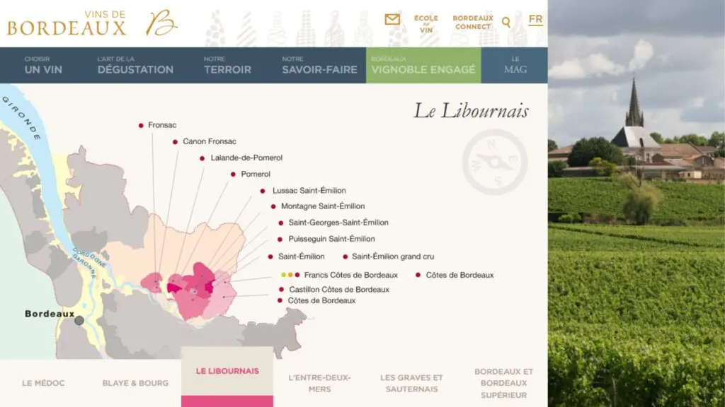 En tout on dénombre un total de 10 AOC dont : Saint-Émilion, Saint-Émilion Grand Cru et ses satellites, Lussac-Saint Émilion, Montagne Saint-Émilion, Puisseguin-Saint Émilion et Saint Georges-Saint Émilion.
