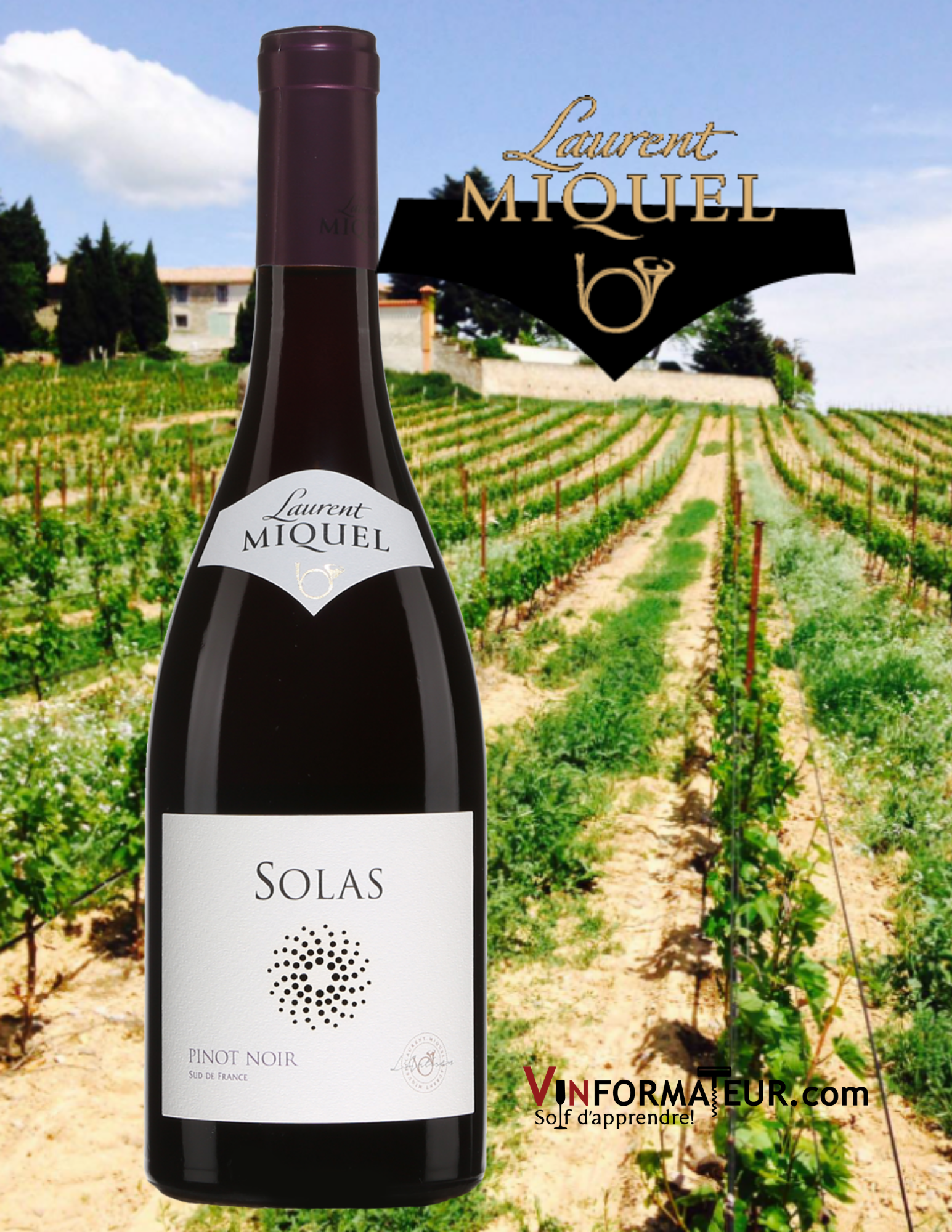 Laurent Miquel, Solas, Pinot Noir, France, Languedoc-Roussillon, 2019, 15,95$, cépage : Pinot Noir 100%, sucre : 1.6 g/l, alc. : 13%, code SAQ : 13584383.