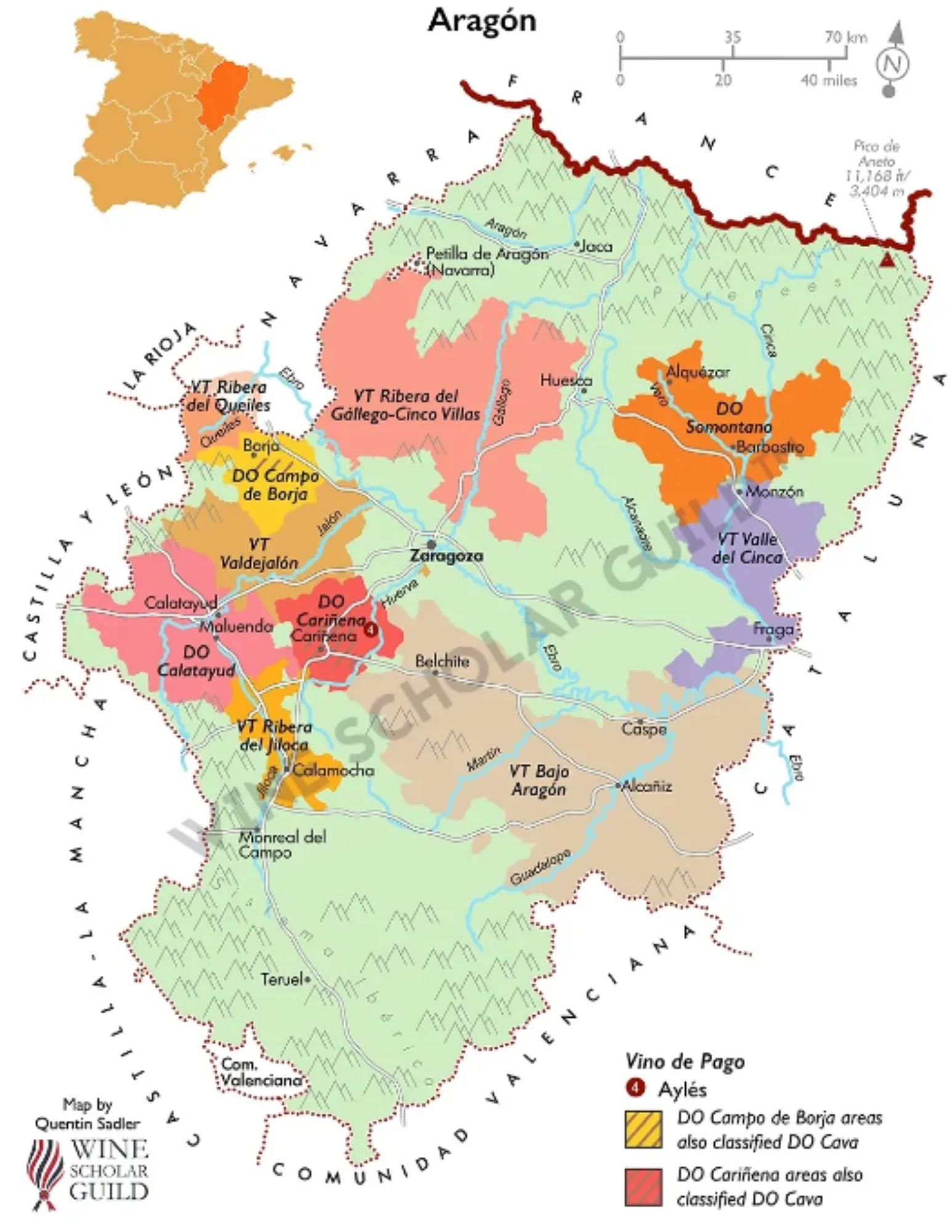 L’ensemble des vignobles couvre 4 500 hectares situés au pied des sierras ibériques d’Algairén et de Pecos, entre les rivières Huerva et Jalón.