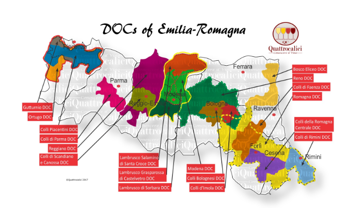 Ce vin nous vient de l’Émilie-Romagne capitale gastronomique de l’Italie qui est située dans le nord de l’Italie. Vous connaissez sans doute le Prosciutto di Parma, le Parmigiano Reggiano et le vinaigre traditionnel de Modène? Ce sont tous des produits qui proviennent de cette région.