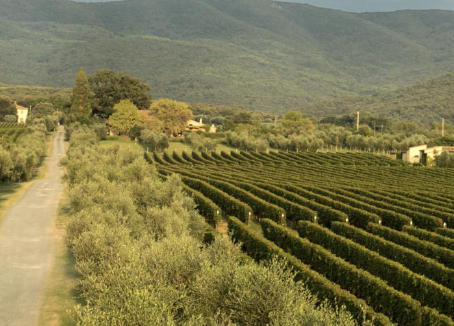 Situé au pied des collines près de Bolgheri, le vignoble d’Ornellaia se trouve à quelques kilomètres à peine de la côte méditerranéenne. Pendant les mois d’été, la brise marine fraîche caresse les vignes et les oliveraies voisines, alors que les collines offrent une protection des vents froids du nord pendant l’hiver.