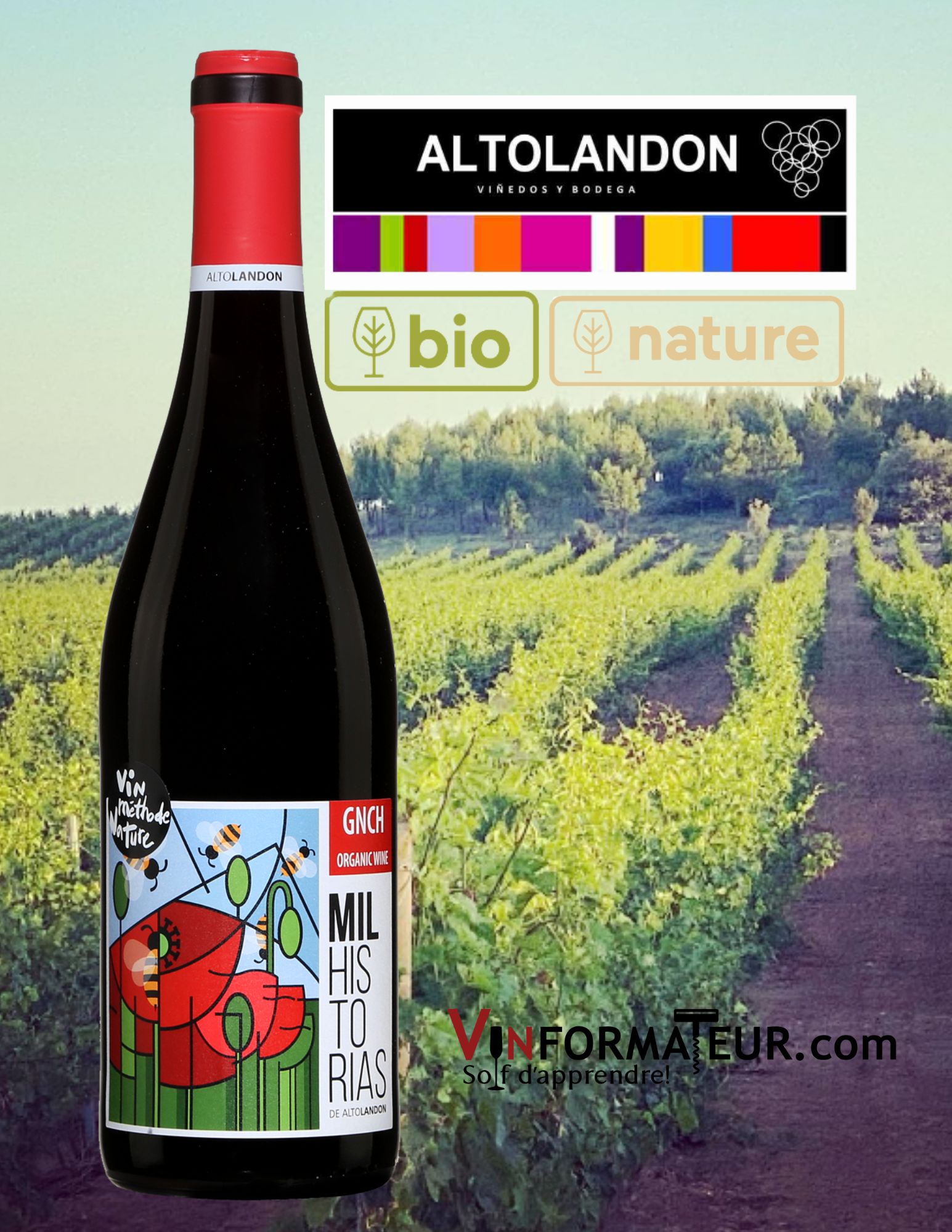 MIL Historias, AltoLandon, Espagne, Manchuela, 2021, 16,25$, vin rouge bio/nature, cépage : Garnacha 100%, sucre : 1.5 g/l, alc. : 14%, code SAQ : 13794111.