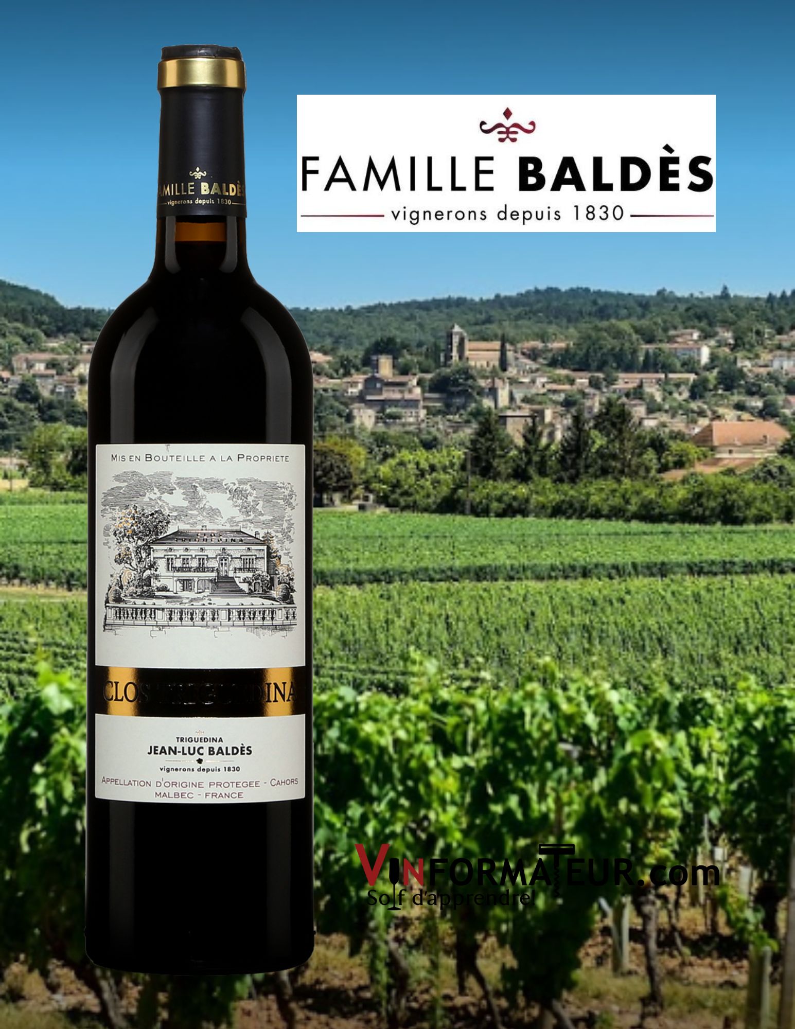 Inspiré par ses études en Bourgogne et par les origines bourguignonnes de son épouse Sabine née à Beaune au cœur des crus de la Côte d’Or, le vigneron Jean-Luc Baldès (7ième génération du domaine familial) privilégie l’approche parcellaire et cherche en permanence à exprimer toutes les palettes de ses terroirs situés dans le Vignoble de Cahors à côté de Puy l’Evêque au sud-ouest de Cahors. Le domaine se trouve entre les méandres de la rivière Lot et s’étend sur 70 hectares sur quatre communes : Puy l’Evêque (capitale du vignoble de Cahors), Vire sur Lot, Floressas et Touzac.
