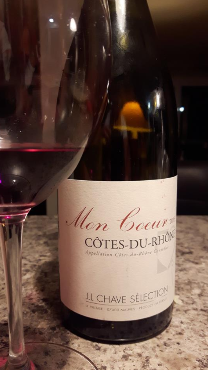 J’ai bien aimé ce vin la! de France, Vallée du Rhône, Mon Coeur, J.L.Chave Sélection, 2015, $23.30, code SAQ: 10330433, noté 90/100 par Wine Spectator.