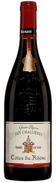 De France, Côtes-du-Rhône, Grande Réserve des Challières, 2016, $13.65 (en spécial $12.55), cépages : Grenache 70%, Syrah 25%, Mourvèdre 5% (GSM), code SAQ : 12383352