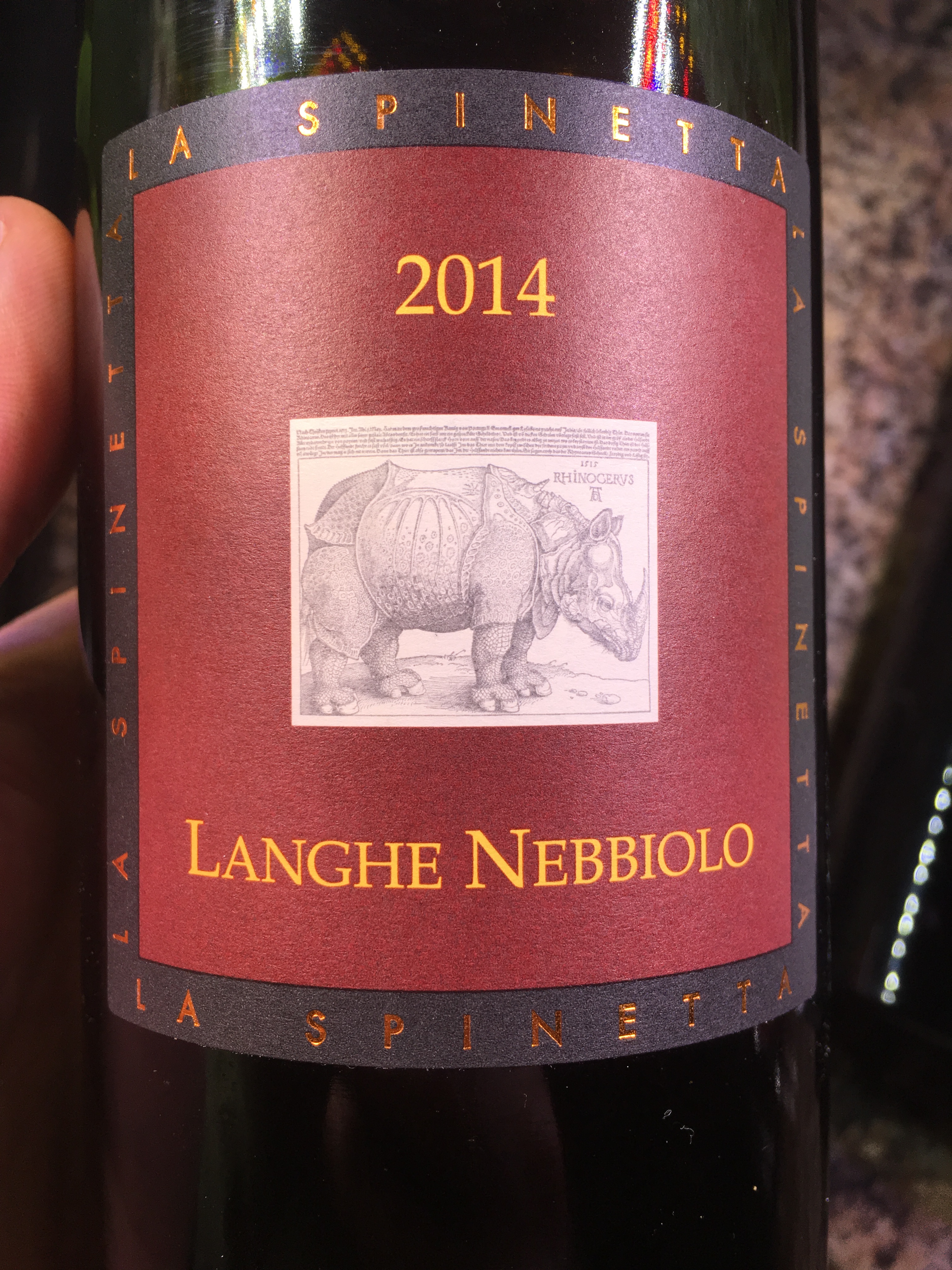 D’Italie, Piémont, Langhe DOCG, La Spinetta (le producteur avec l’illustration d’un rhinocéros sur ses bouteilles), Nebbiolo, 2014, $29.20, code SAQ: 11337979.