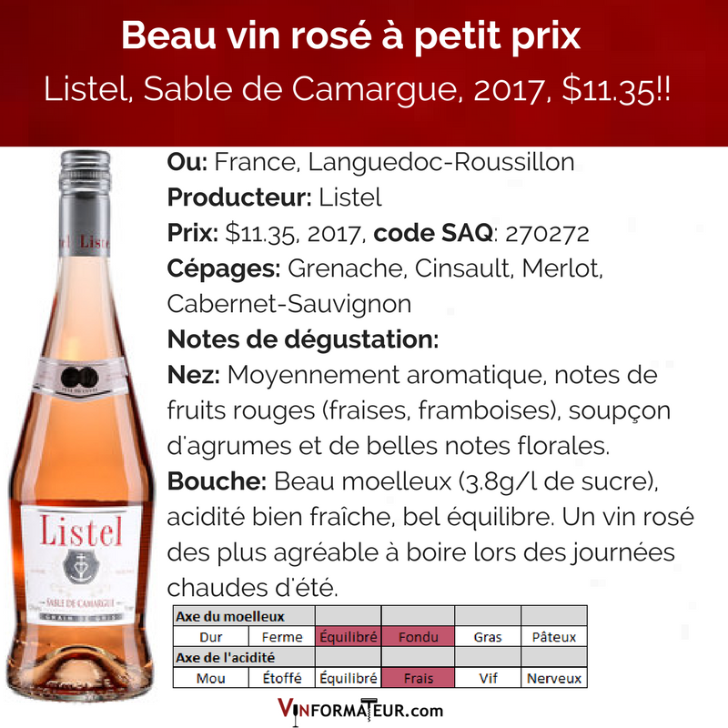 France, Languedoc-Roussillon, Listel, vin rosé, Sable de Camargue, Grain de Gris, 2017, $11.35, code SAQ : 270272