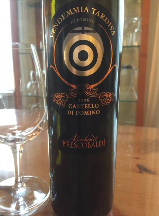 Nous avons terminé le repas hier soir avec ce très beau vin de dessert d’Italie. Le Vendemmia Tardiva (vendanges tardives) di Pomino, Castello di Pomino, 2006, $30.75 (500ml).