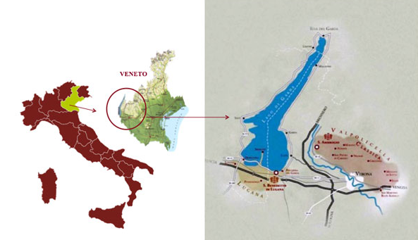 Ce vin est produit dans la zone surplombant la rive sud-est du Lac de Garde, entre Bardolino et Peschiera.